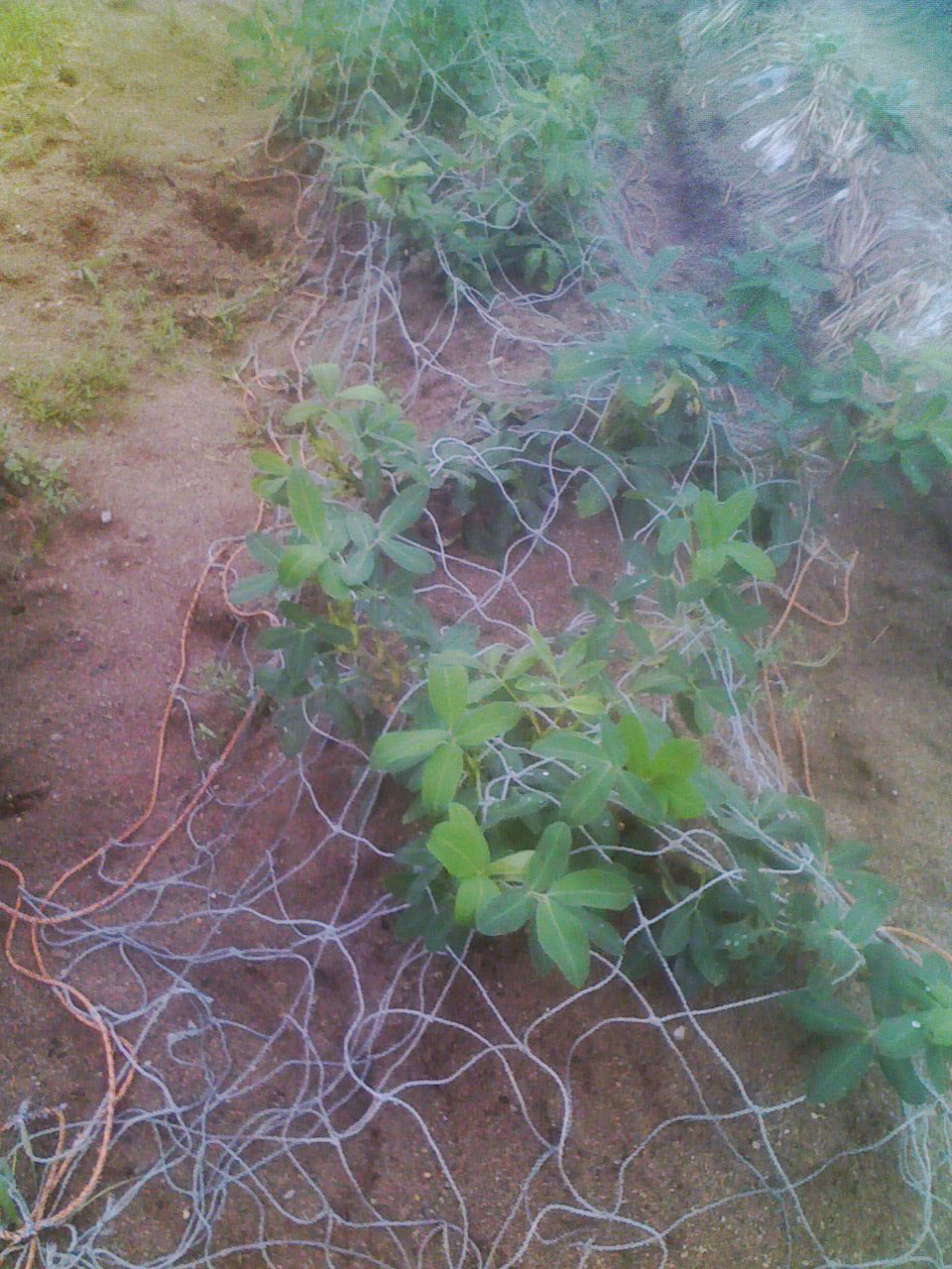 もうすぐ収穫!?の落花生♪からすちゃんが掘り出しちゃうんでおいちゃんの知恵を借りて網かけました